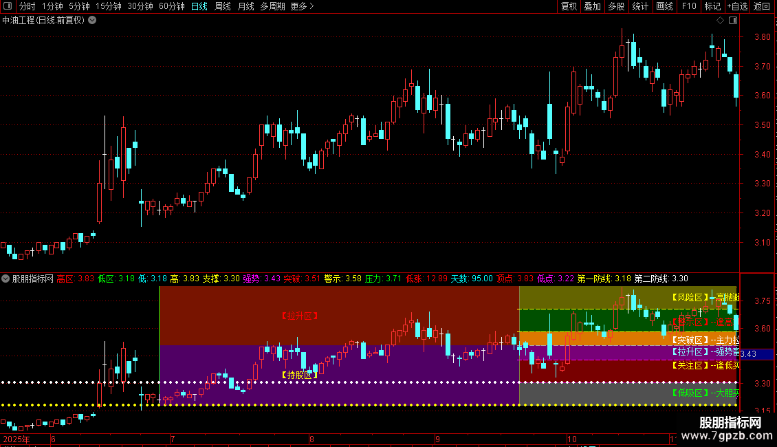 DRAWTEXT(CURRBARSCOUNT=N/4+5,GD-KJ*0.09,'【风险区】--高抛避险'),COLOR00FFFF;
