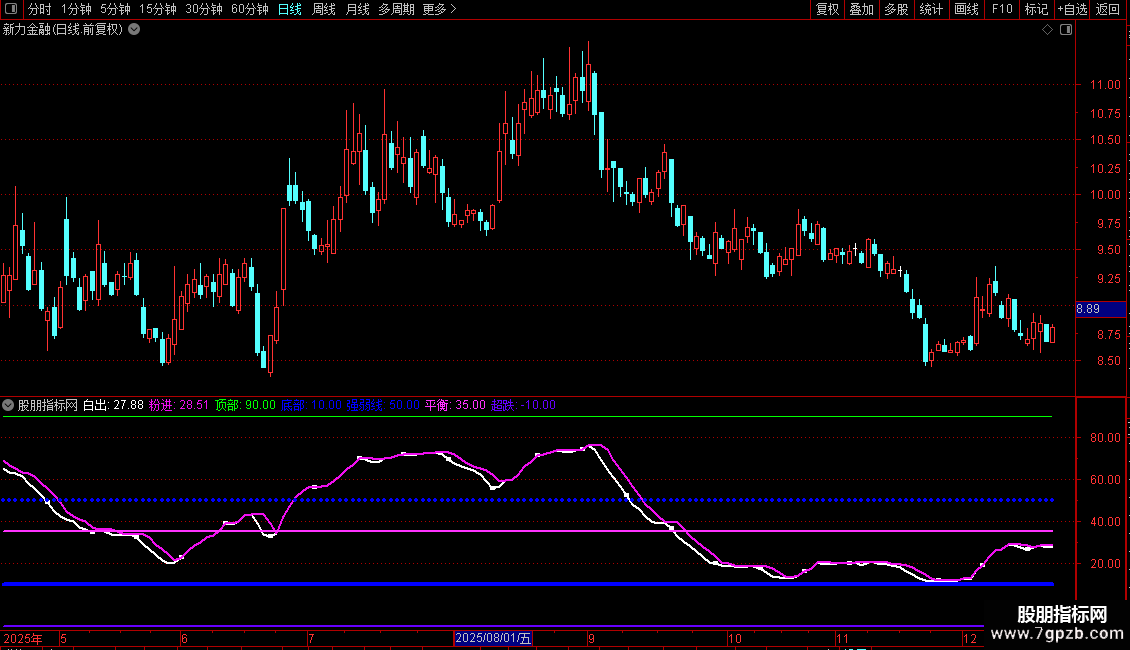 白出: SMA((CLOSE-VAR2)/(VAR1-VAR2),8,1)*100,LINETHICK2,COLORWHITE;