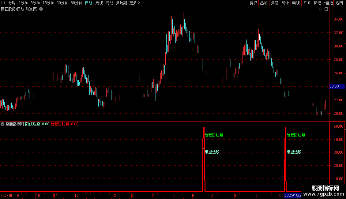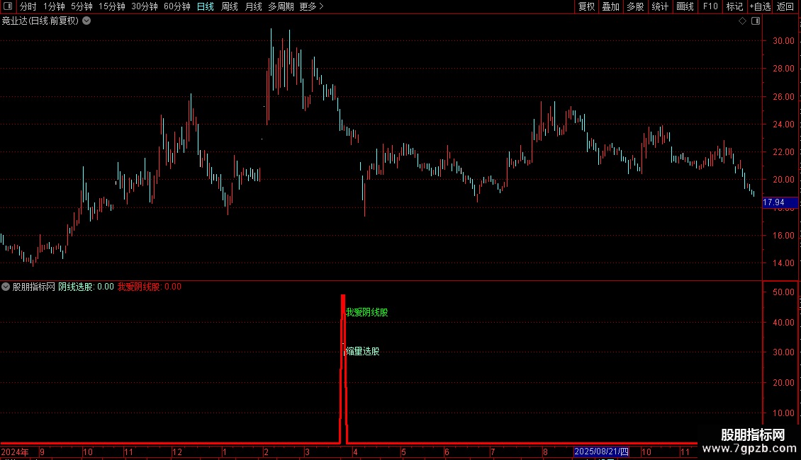 我爱阴线股:IF(阴线选股,49,0),LINETHICK3,COLORRED;