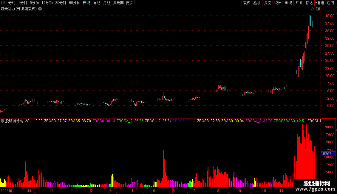 当满足条件ZBGSX_2>MAZBGSX_2时,在0和成交量(手)位置之间画柱状线,宽度为2,0不为0则画空心柱.,画红色