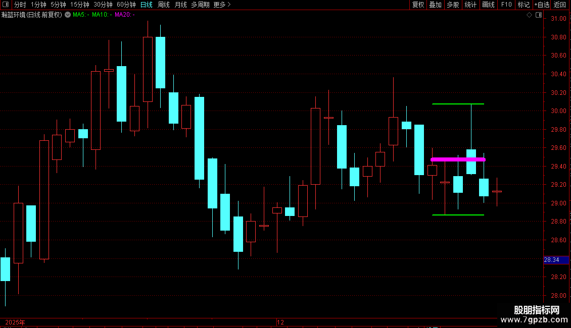 中:IF(CONST(SUM(1,0)>5)*(CURRBARSCOUNT>1)*(CURRBARSCOUNT<5+2),(CONST(REF(LLV(L,5),1))+CONST(REF(HHV(H,5),1)))/2,DRAWNULL),DOTLINE,COLORMAGENTA,LINETHICK8;