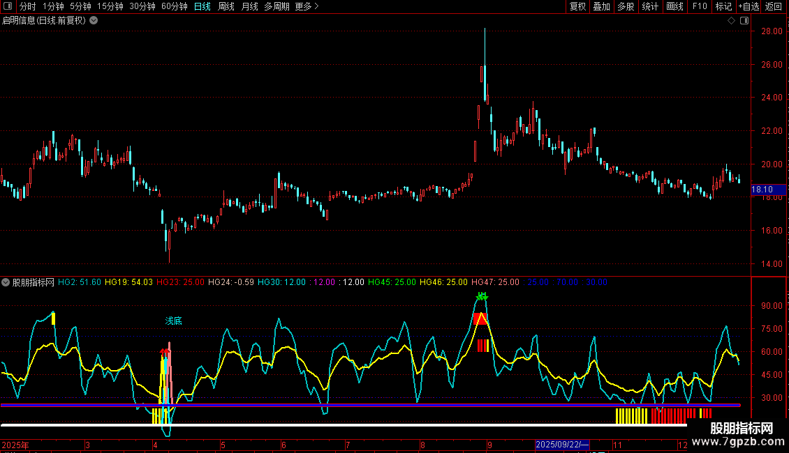 DRAWTEXT(CROSS(-25,HG24),90,'深底'),COLORF00FF0;