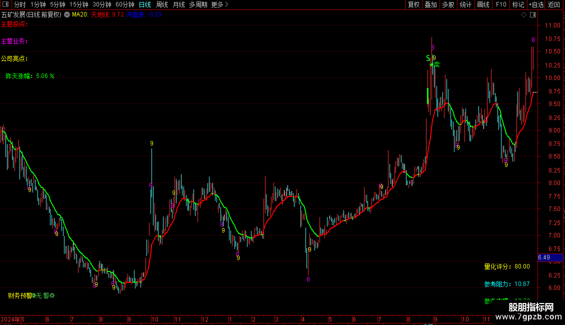当满足条件A_8ANDREF(A,8)=0时,在最高价*1.02位置书写数字,画洋红色