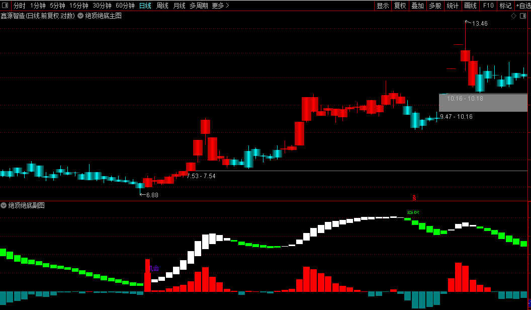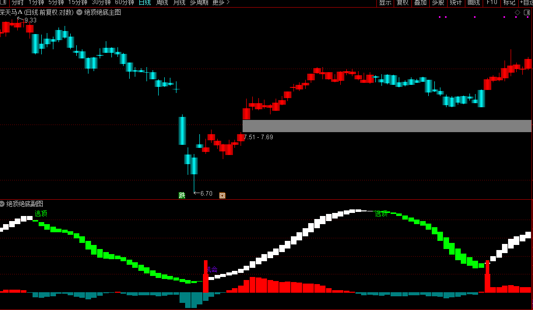 通达信【绝顶绝底】主副/选股指结合趋势动能与超买超卖状态潜在买卖点源码