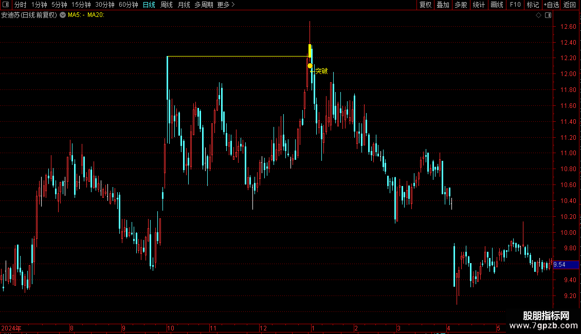 DRAWTEXT(XH,L*0.9905,'←突破'),COLORYELLOW;