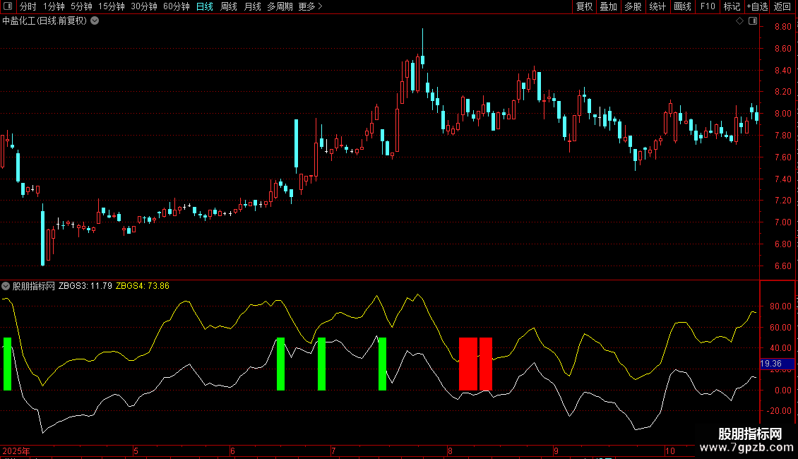 • 买入信号:出现彩色柱状图时,表明符合多项技术买入条件