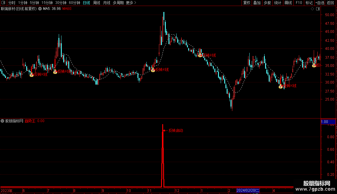 通达信〖反转k线〗捕捉股价在超跌或长期盘整后突然放量强势反转套装指标