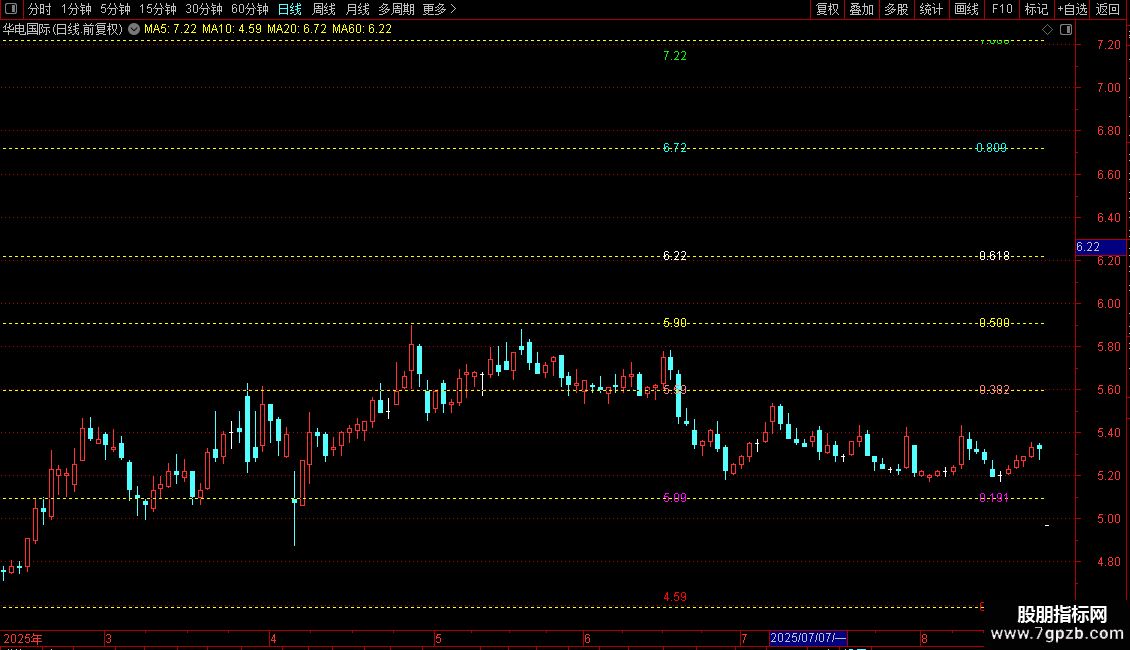 H7:=高-(高-低)*0.236,DOTLINE,COLORYELLOW;