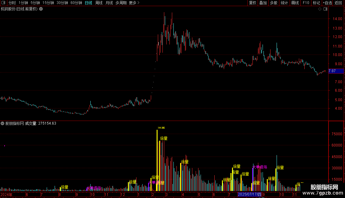 大单入场指标公式 倍量与大单入场双信号异动分析 附与副图