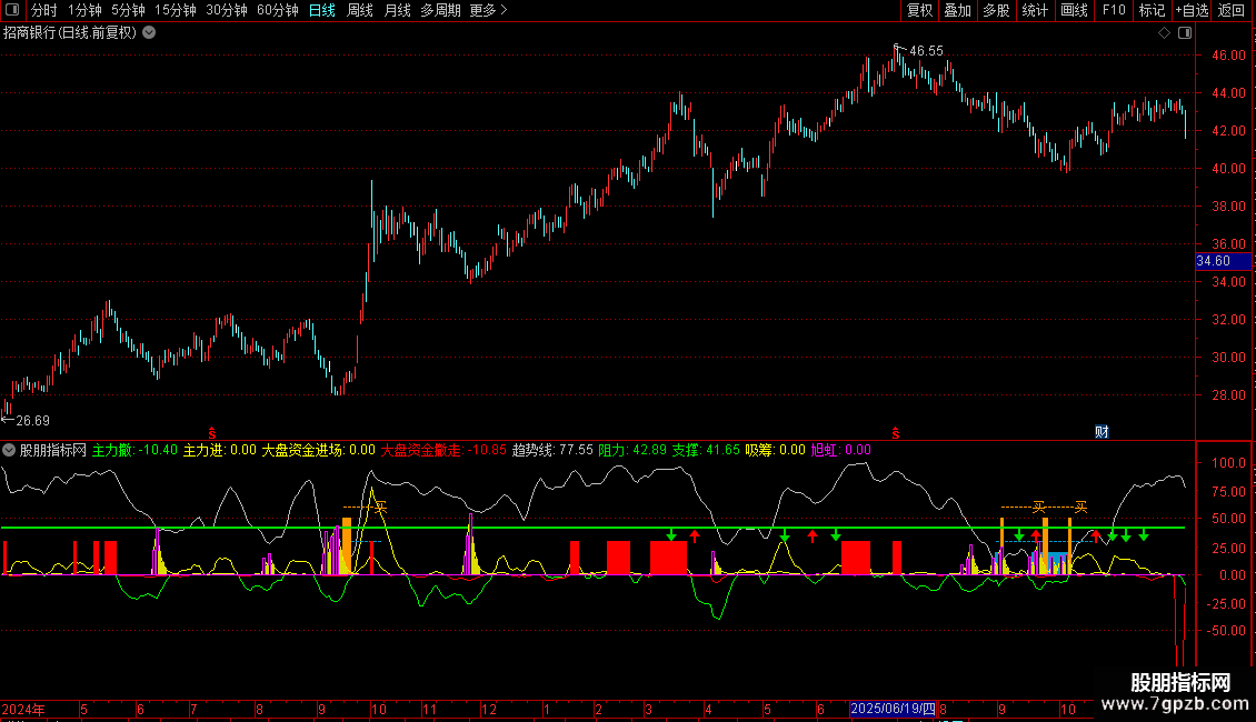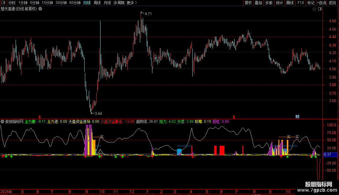 主力撤: IF(V4<=0,V4,0),COLORGREEN;
