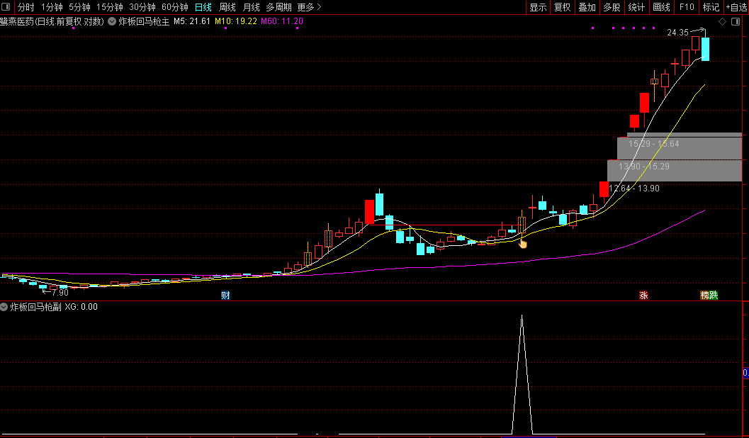 核心思路就是首板回调后,以炸板方式突破首板低点 炸板回马抢指标帮助识别妖股启动信号,