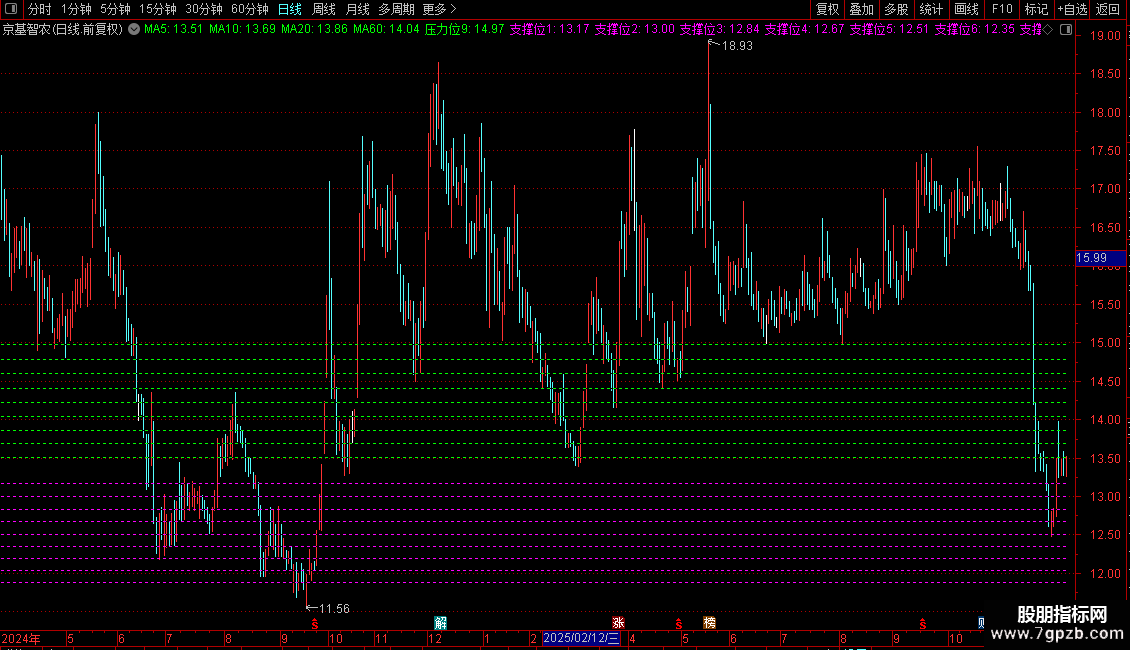 支撑位2:(DYNAINFO(3)/POW(X,6)),COLORMAGENTA,DOTLINE;