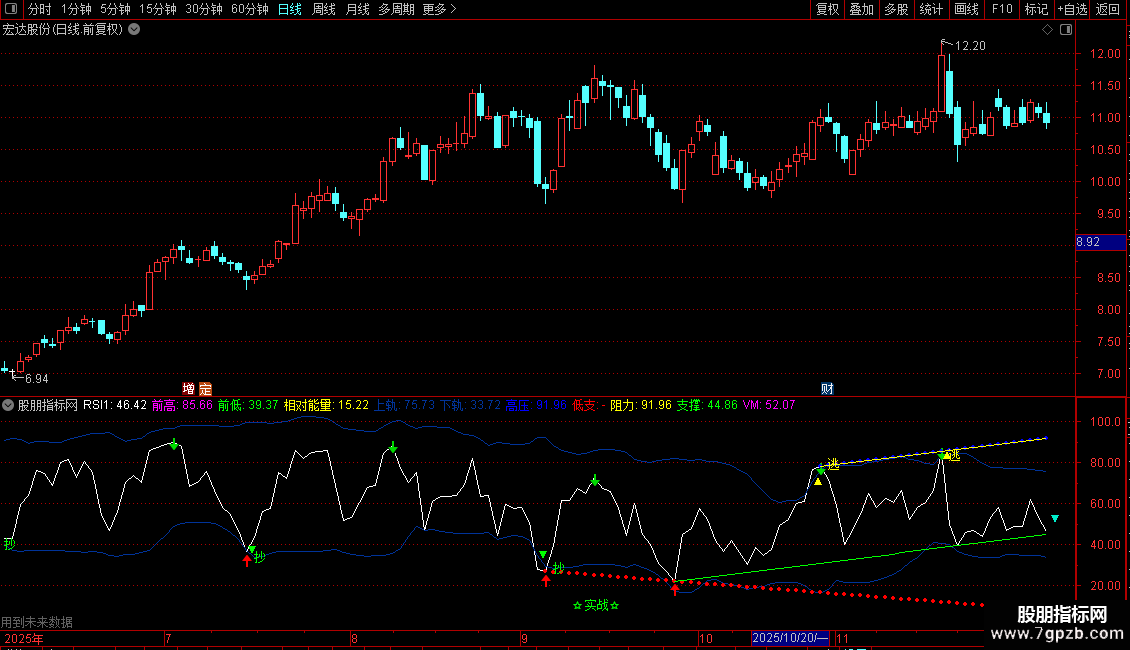 DRAWTEXT(CROSS(UPPER,RSI1),UPPER,'逃'),COLORYELLOW;