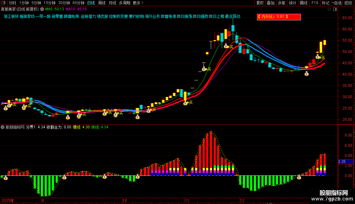 『收割主力』主副图+指标 识别资金潮汐 散户收割主力神器