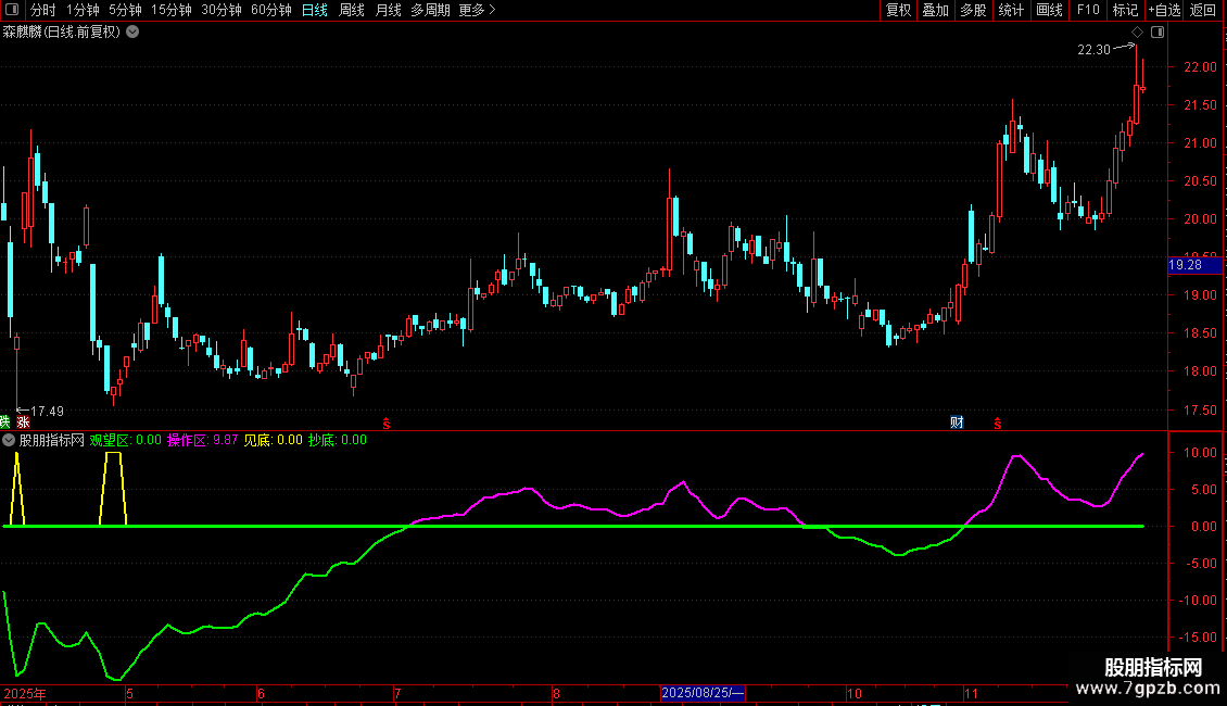操作区:IF(BIAS3>0,BIAS3,0),COLORFF00FF,LINETHICK2;