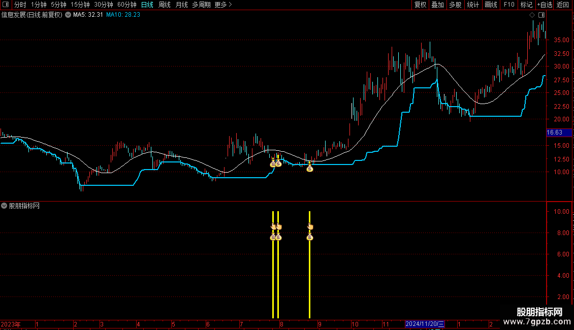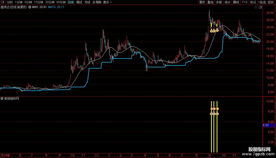 短期底部线:LLV(HIGH,30),LINETHICK2,COLORFFCC00;