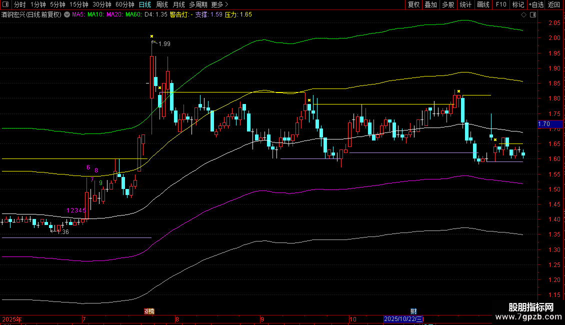 警告灯:IF(TJ,HIGH*1.008,DRAWNULL),CROSSDOT,LINETHICK2,COLORYELLOW;