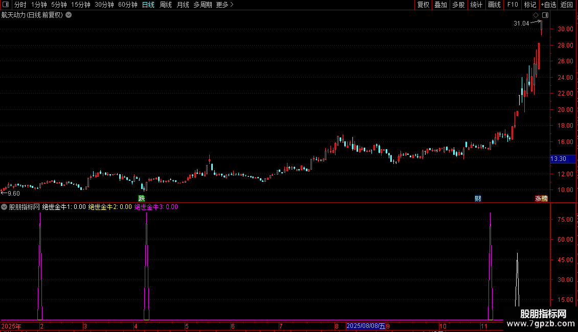 绝世金牛3:IF((A AND B AND 避开刀尖 AND COUNT(A AND B ,20)=1),80,0);