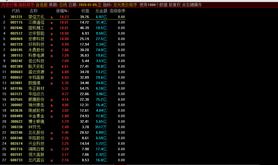 通达信【龙光竞价排序】优化版早盘竞价阶段设计的竞价排序指标源码