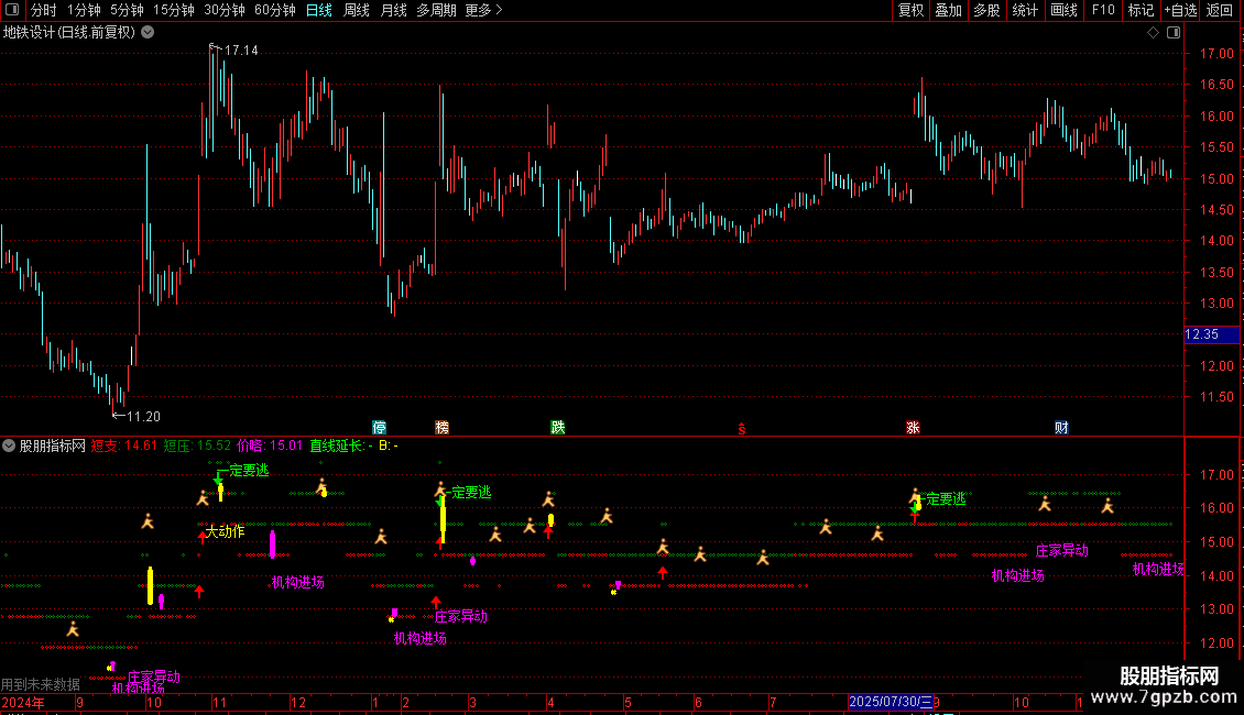 DRAWTEXT(VAR31 AND COUNT(VAR31,30)=1,LOW*0.95,'机构进场'),LINETHICK1,COLORFF00FF;