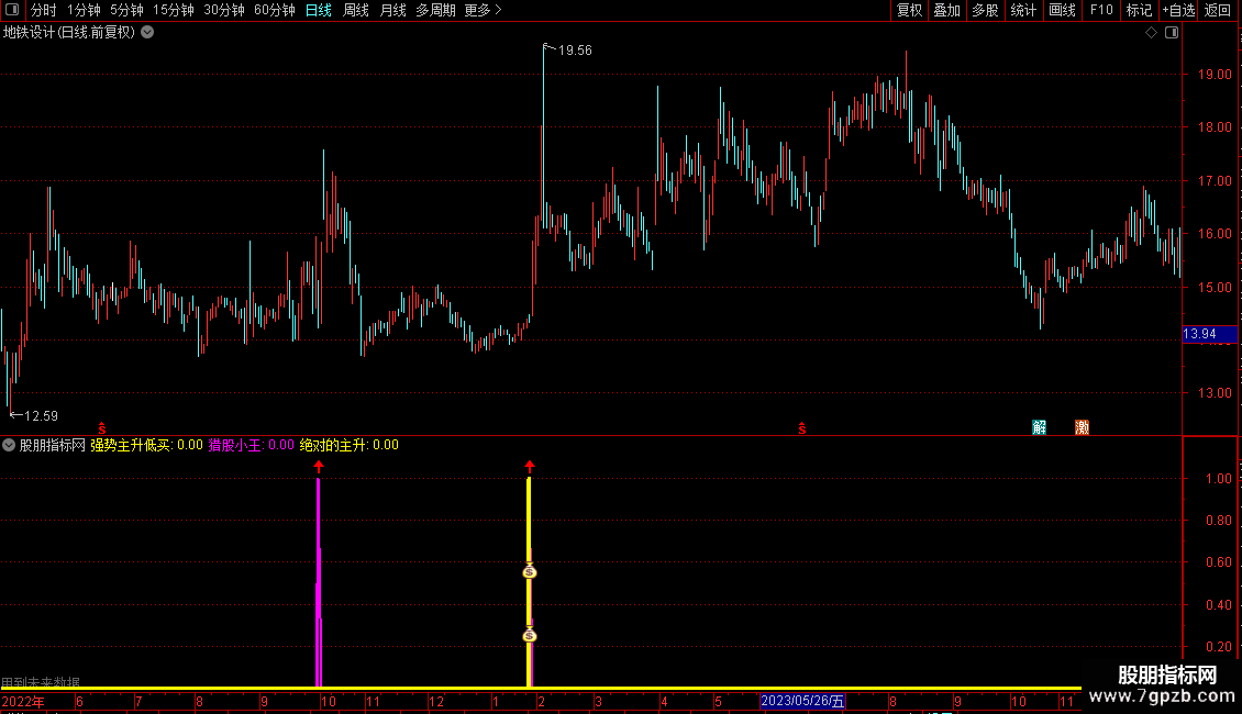 猎股小王:L<底部1 AND C<DSA AND 强势为王,COLORMAGENTA,LINETHICK2,LINESTICK;