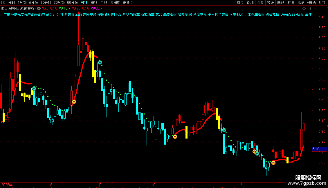 下拐:IF(HG7>=HG9,HG7,DRAWNULL),COLOR33FF33,POINTDOT,LINETHICK4;