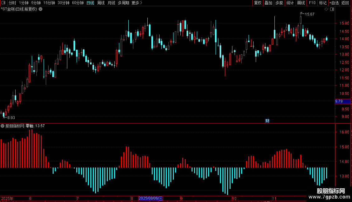 STICKLINE(MACDZ>0,MACDZ*4+零轴,零轴,1,0),COLORRED;