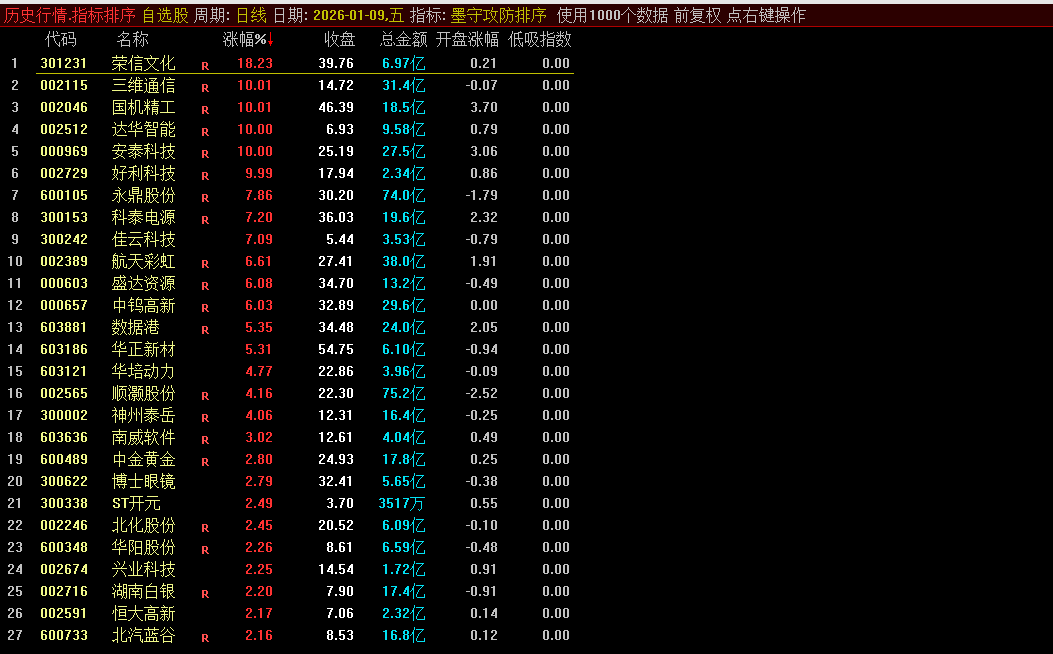 通达信【墨守攻防】竞价低吸排序/副图选股套装指标低吸策略信号不飘移源码