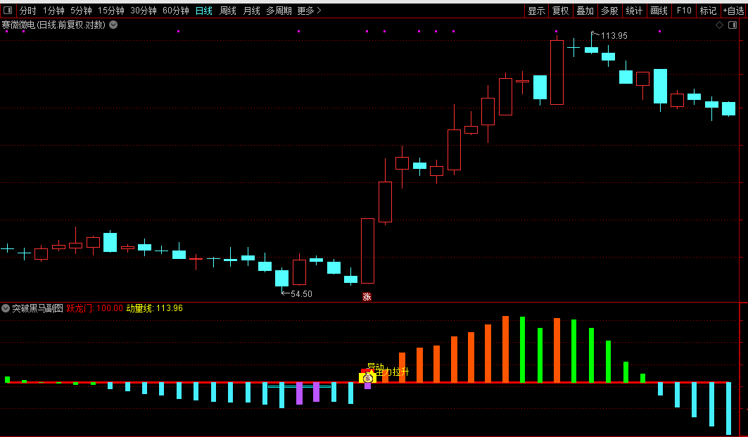 通达信【突破黑马】副图/选股指标捕捉黑马股启动前后的关键节点源码