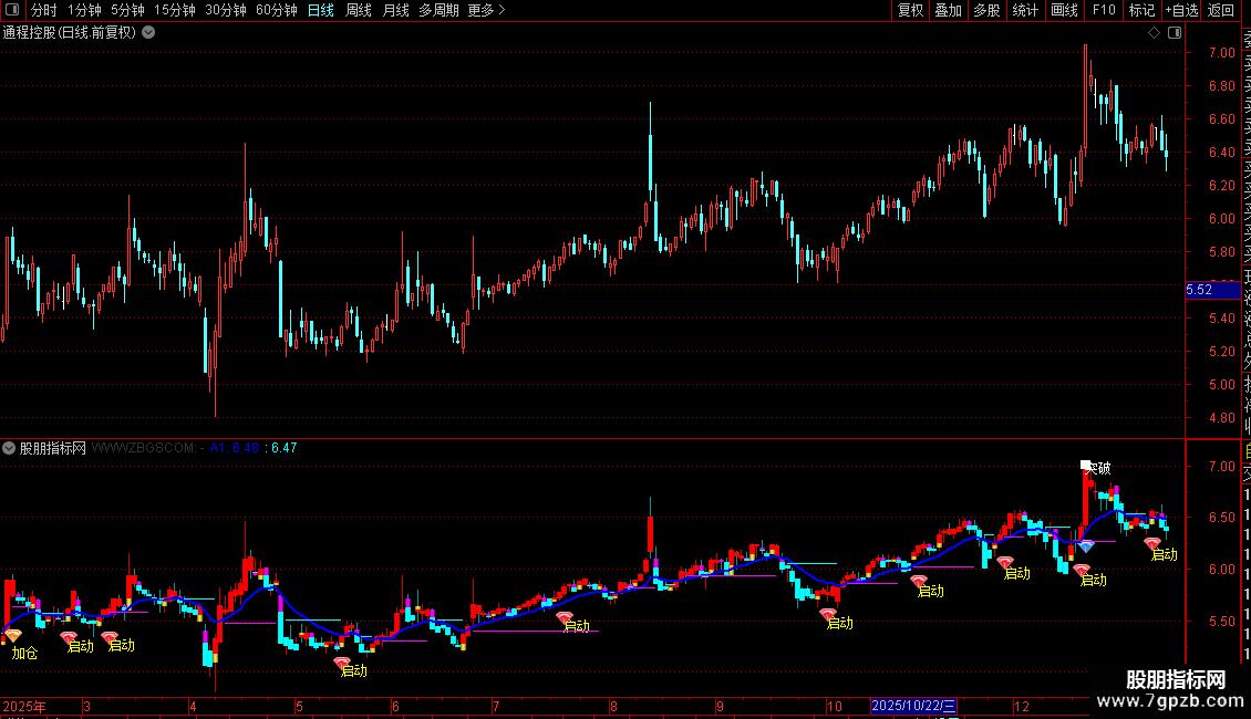 2. 信号识别:出现“启动”图标+文字,代表短期均线金叉且股价走强,可关注建仓;“进入”信号提示中期趋势转好,适合轻仓介入;“加仓”“突破”信号(突破480日高点)出现时,代表趋势确认突破,可加仓跟进;