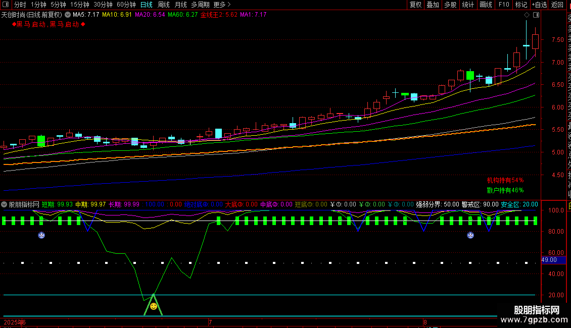 D3:=CROSS(短期,长期) AND 长期<8 AND 中期<20;