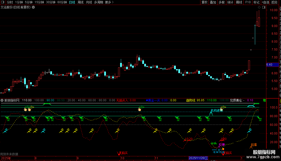 超级资金进场:=IF(VB>=0,VB,0),COLORRED;