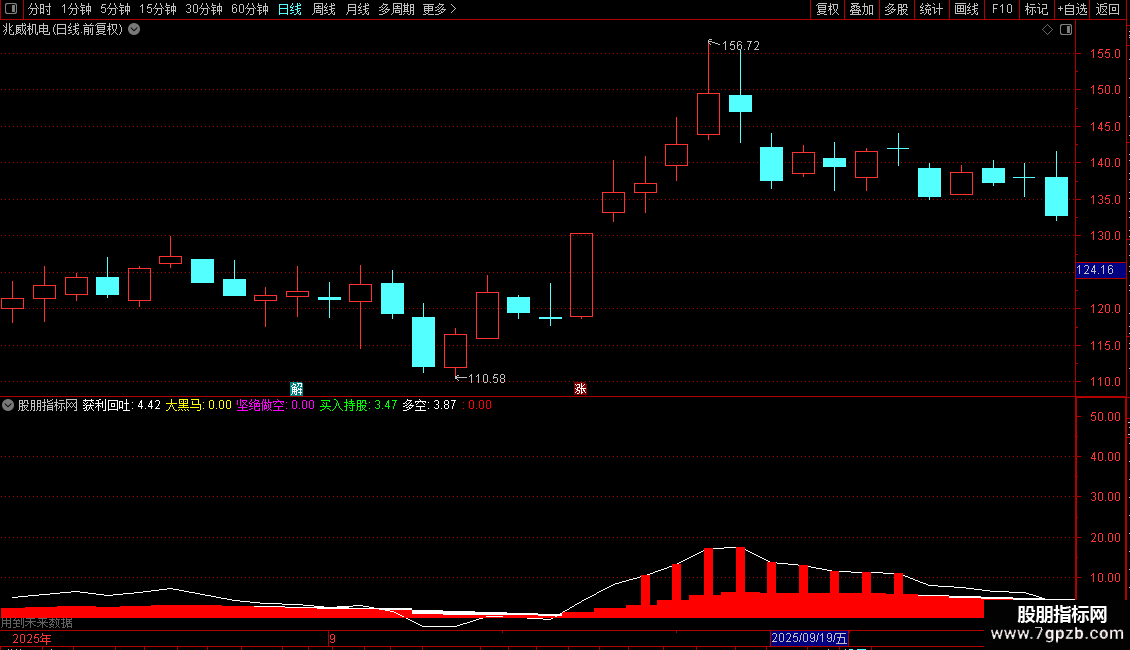 输出 获利回吐:(A2>=0)*A2,画白色,线宽为0