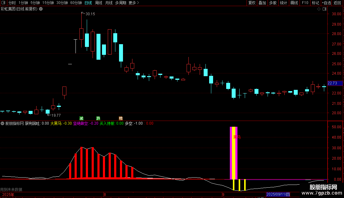 大黑马:(A2<0)*A2,COLORD4FF7F,LINETHICK0;