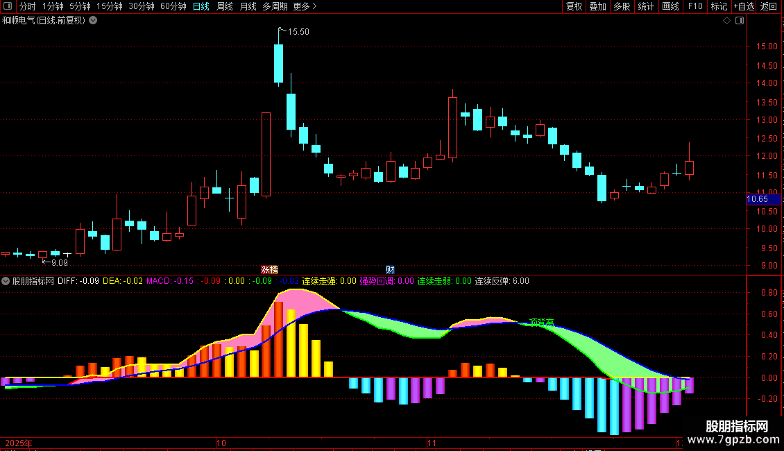 连续反弹:BARSLASTCOUNT(MACD>REF(MACD,1) AND MACD<0)NODRAW;{天};