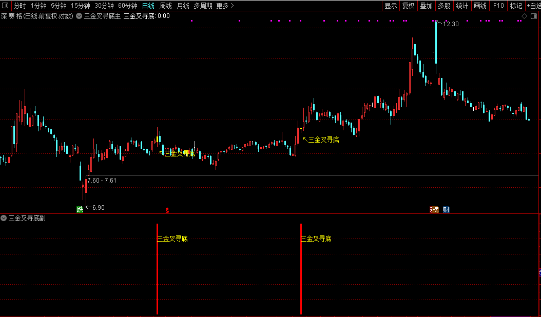 通达信【三叉寻底】主副/选股指标短线操作三金叉同时出现买入源码