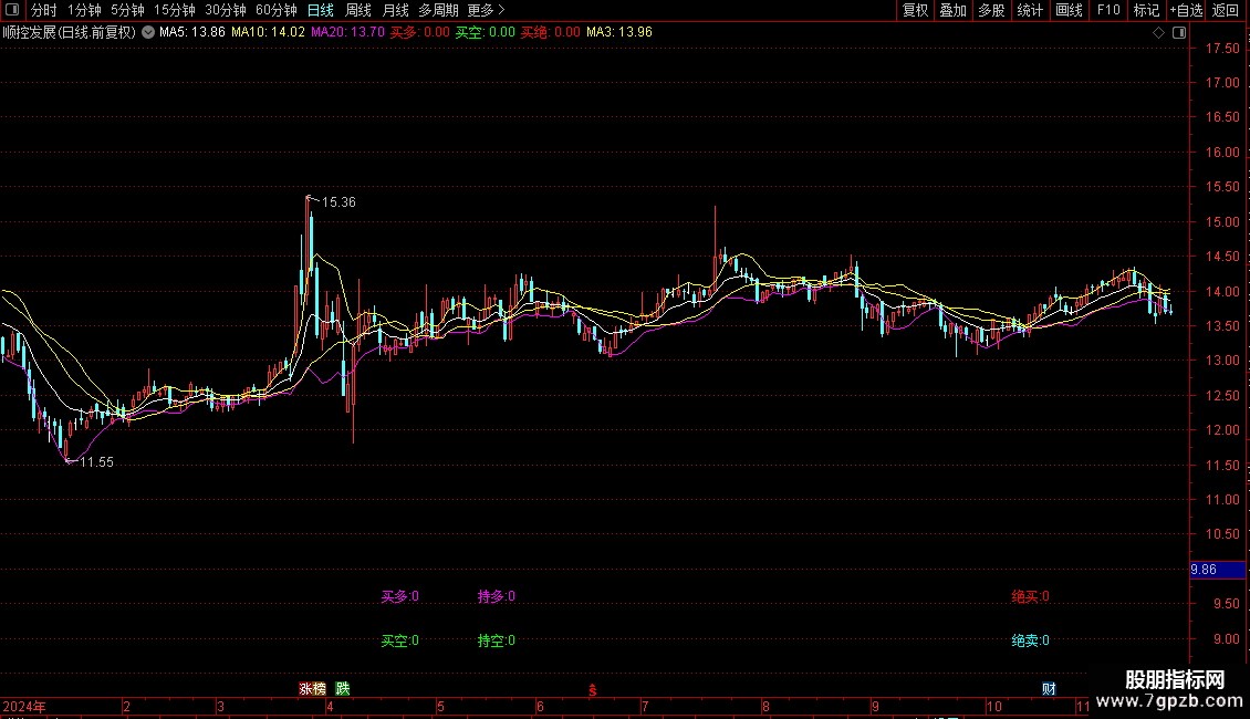 卖绝:=IF(卖 ,1,0),STICK,COLORCYAN,LINETHICK3;