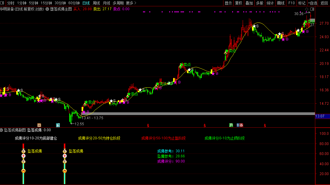信号触发:等待坠魔成佛红色信号出现,并观察“成佛评分”是否在20分左右或开始从低位回升。