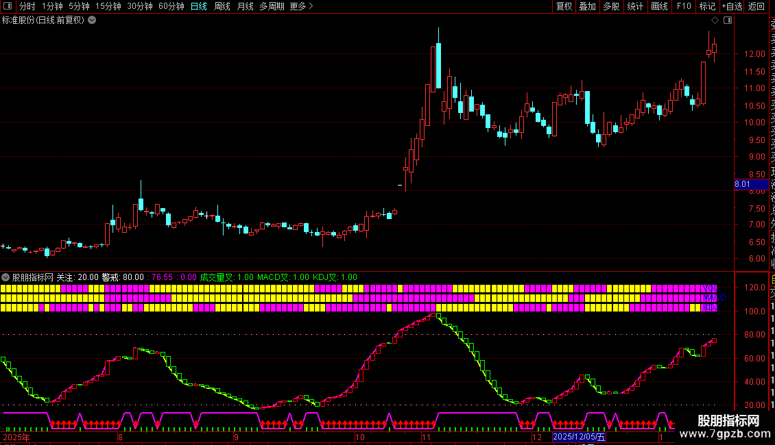 KDJ叉:K>D POINTDOT;