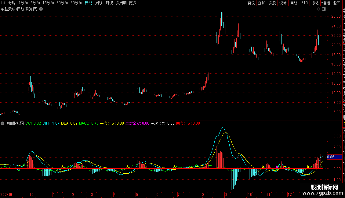 一次金叉:IF(一次金,0.3,0),coloryellow,LINETHICK2;