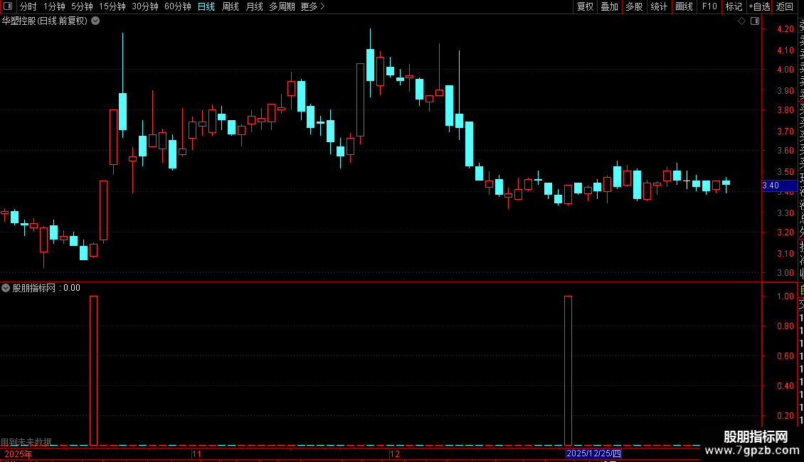 F:=100*(C-REF(C,1))/REF(C,1);今小昨:=IF(C<REF(O,1) AND F<0,1,0);S1:=今小昨;今小前:=IF(C<REF(O,2) AND F<0,1,0);S2:=今小前;A1:=S1=0 AND REF(S1,1)=1 AND S2=0 AND REF(S2,1)=1 AND CROSS(ZIG(3,3) ,REF(ZIG(3 ,3),1));A2:=S1=0 AND REF(S1,1)=1 AND S2=0 AND REF(S2,1)=1 AND CROSS(ZIG(3,5) ,REF(ZIG(3 ,5),1));A3:=S1=0 AND REF(S1,1)=1 AND S2=0 AND REF(S2,1)=1 AND CROSS(ZIG(3,10) ,REF(ZIG(3 ,10),1));A1 AND A2 AND A3,VOLSTICK; {选股要请删VOLSTICK即可}