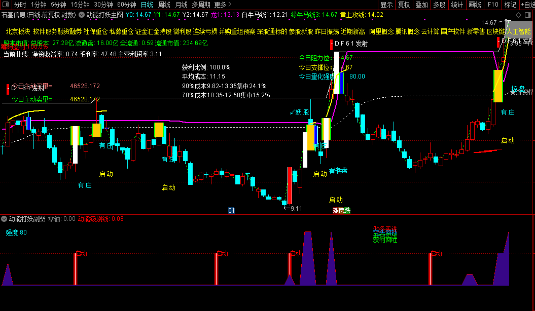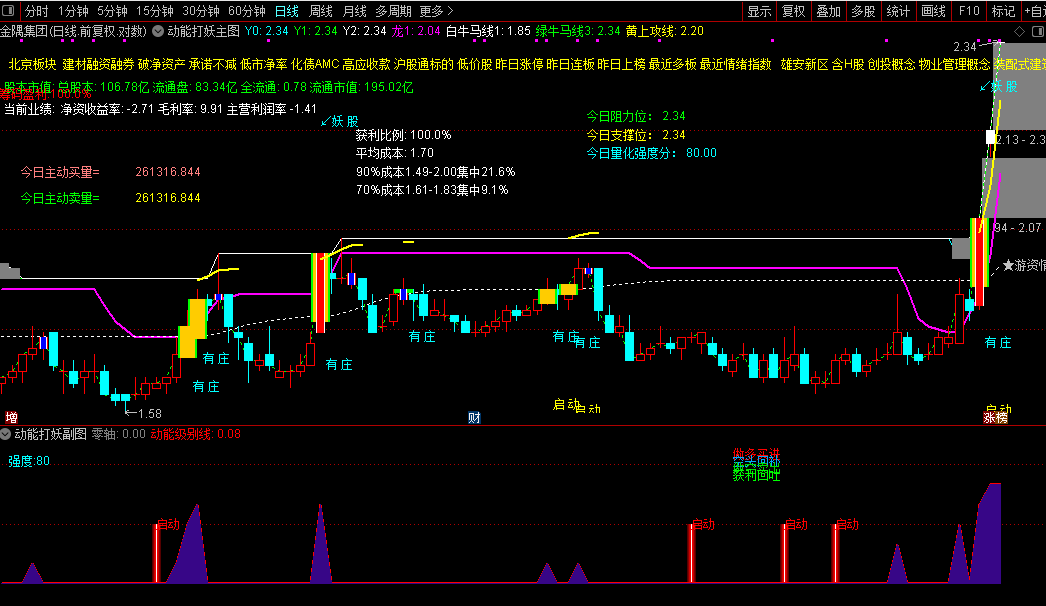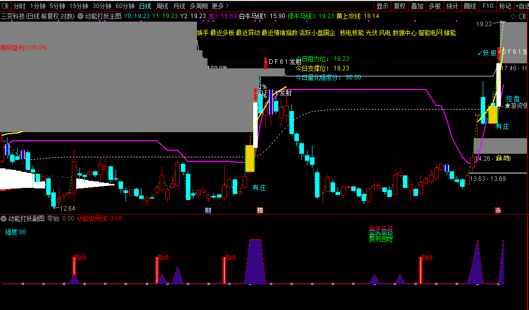 通达信【动能打妖】1主1副2选股捕捉资金动能和游资情绪源码分享
