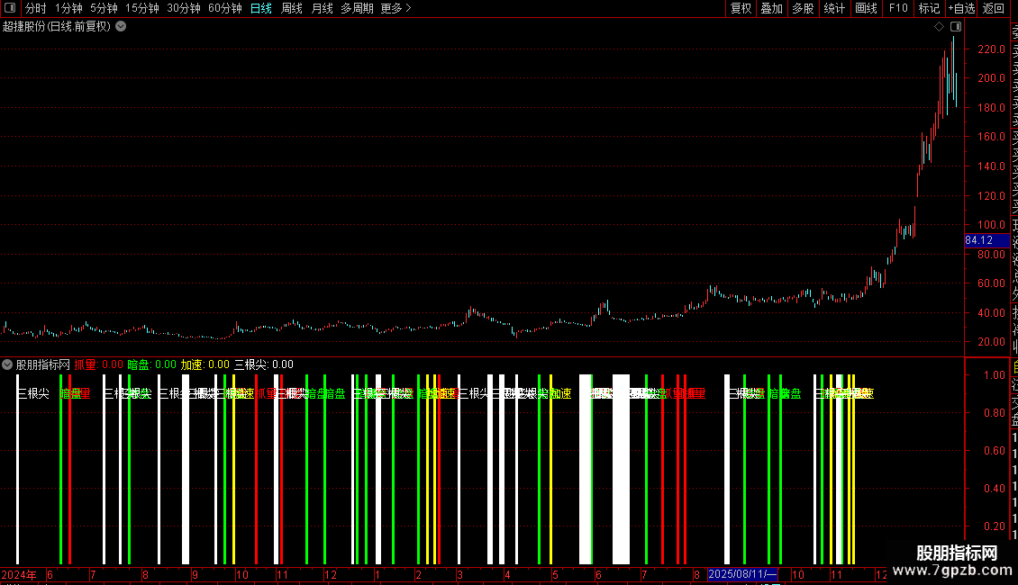 DRAWTEXT(三根尖条件,0.9,'三根尖'),COLORWHITE,LINETHICK2;
