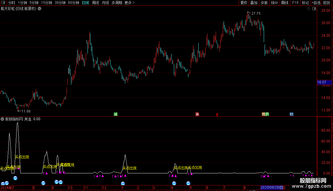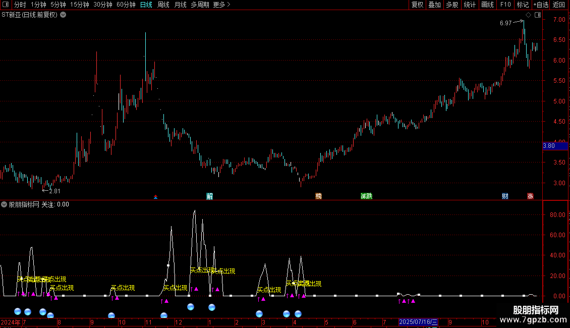 DRAWTEXT(CROSS(关注,1.2),关注*0.5-6,'↑▲'),COLORFF00FF;