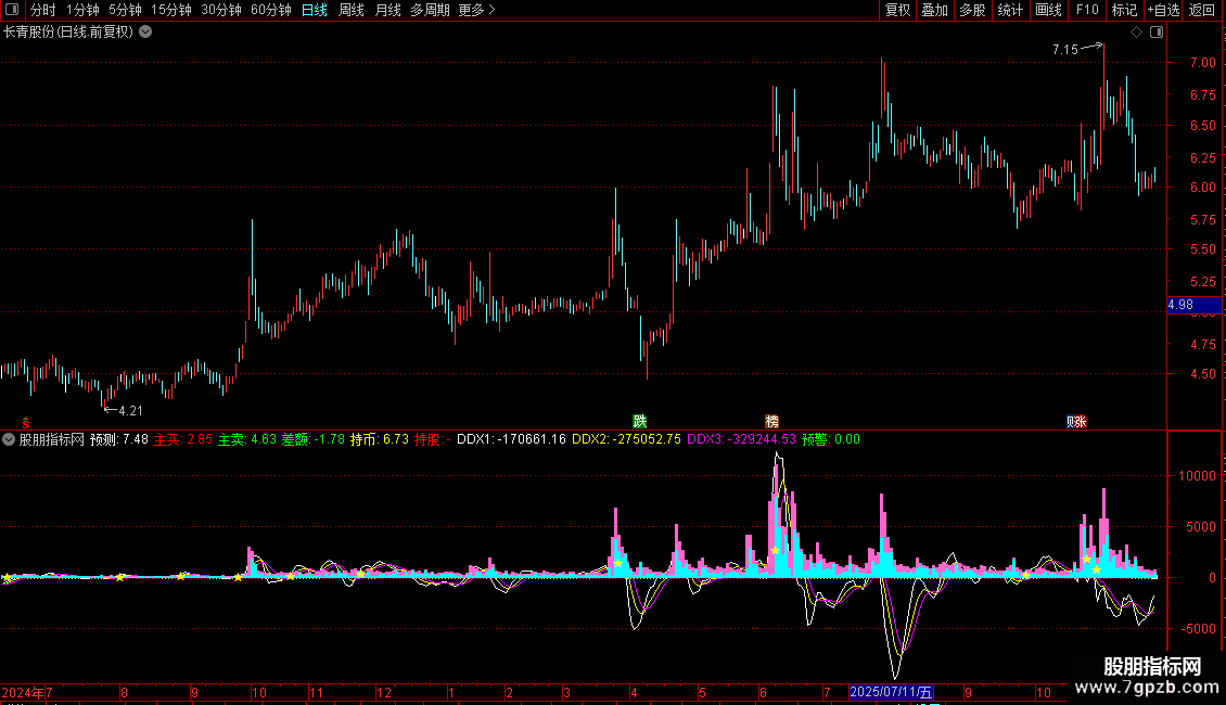 预警:DDX>0 AND MA(V,5)>MA(MA(V,5),5) AND CROSS(DDX1,DDX2),LINETHICK;