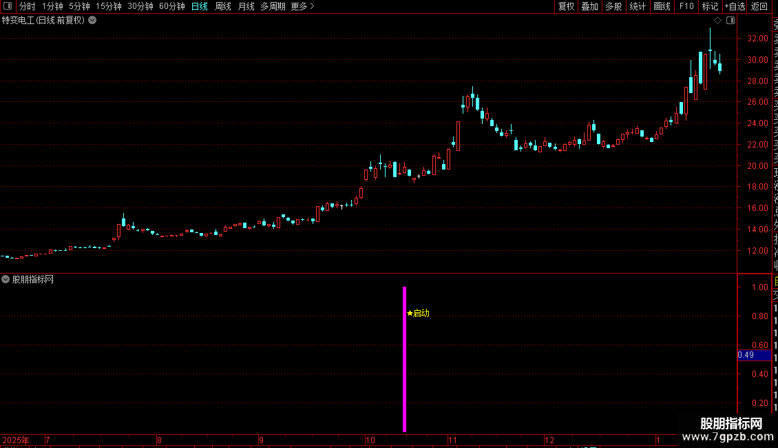 1. 突破启动指标是一款高效的副图及工具,专为捕捉股价右侧碎步小连阳后的突破起涨信号而设计。其核心原理在于分析多周期K线间的交叉关系,精准定位趋势启动点,帮助投资者把握突破启动的最佳时机。