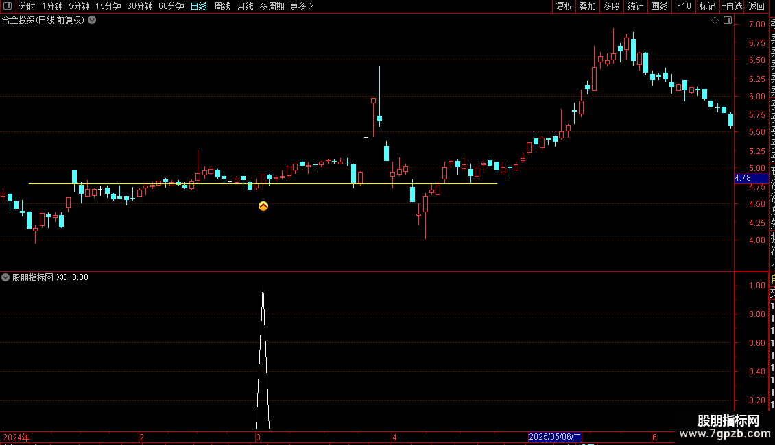 ZBGS37:=IF(CROSS(CLOSE,REF(ZBGS32,1)),REF(ZBGS32,1),0);
