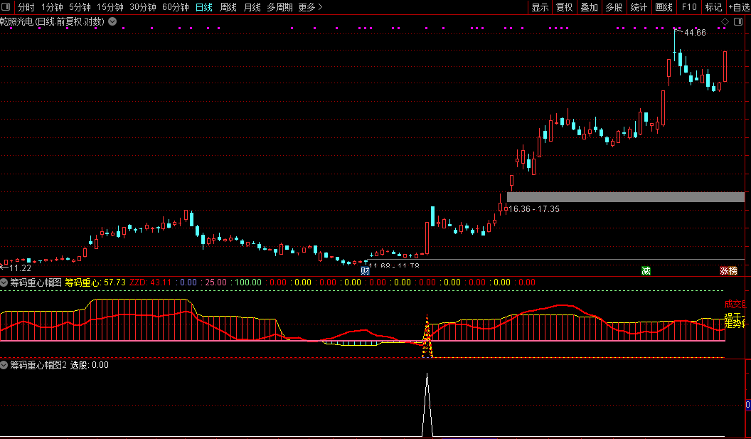 通达信『筹码重心』副图/选股筹码指标捕捉个股趋势启动点源码