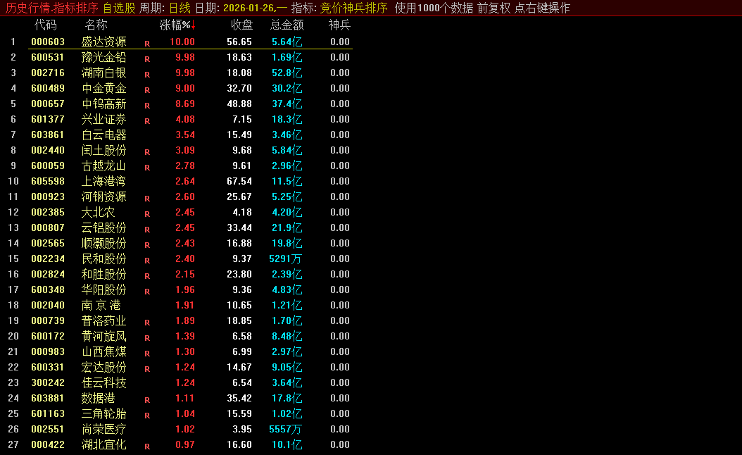 通达信【竞价神兵】集合竞价排序/选股指标筛选竞价强势潜力股源码