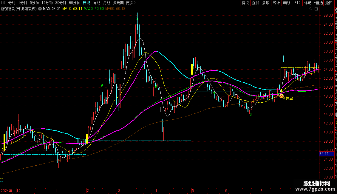 起爆线:EMA(HHV(C,10),30),COLORMAGENTA,LINETHICK2;